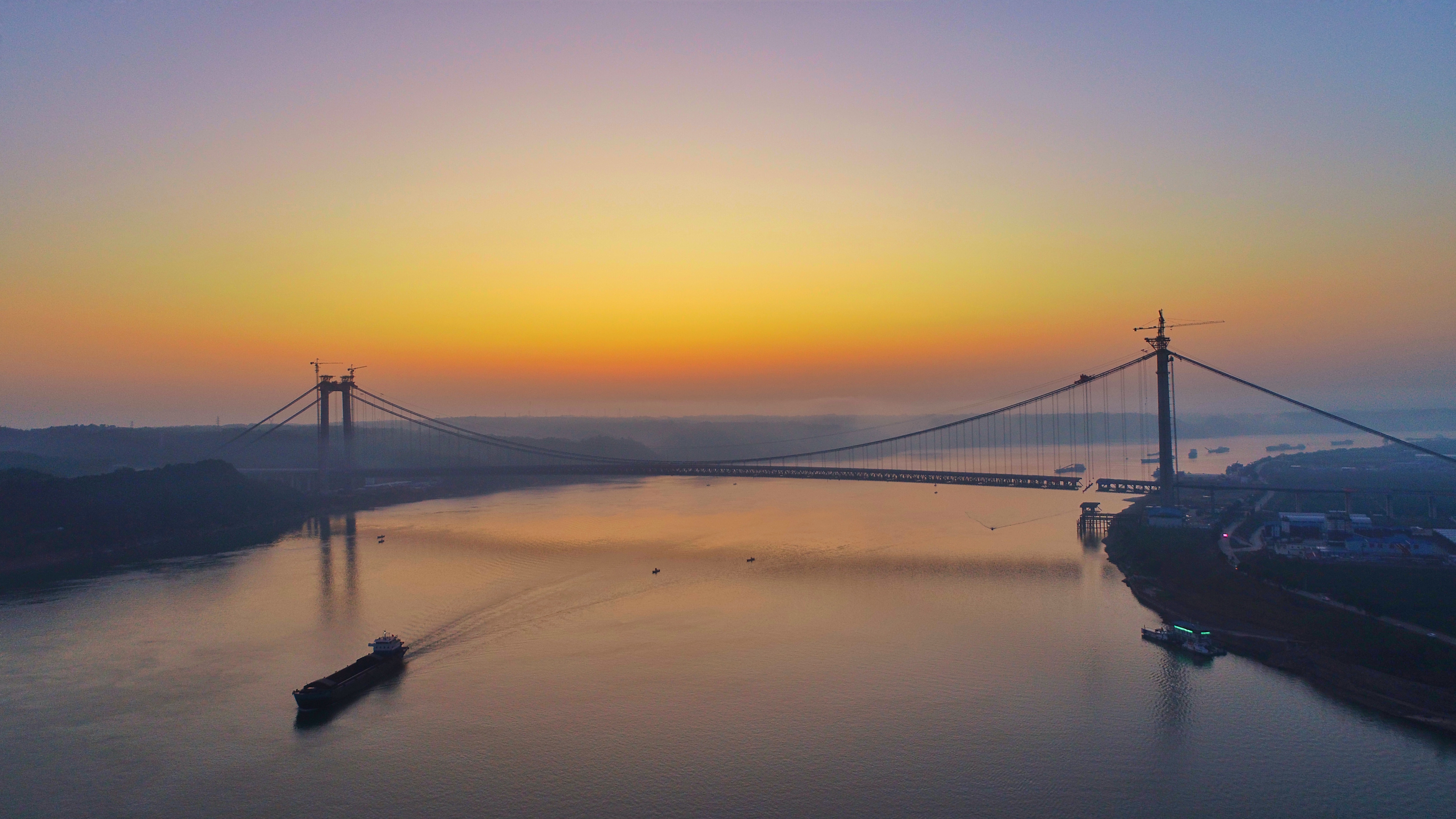 宜都長江大橋,又稱“宜都長江公路大橋”,是位于中國湖北省宜昌市的一座公路雙塔單跨鋼桁梁懸索橋,跨越長江,連接北岸枝江市白洋鎮(zhèn)和南岸宜都市陸城街道,是呼北高速公路宜昌至張家界段的控制性工程,也是湖北省“753”骨架公路網(wǎng)中規(guī)劃“縱6”的重要組成部分。大橋北接??抵烈瞬咚俟?,南連宜昌至張家界高速公路湖南段。大橋全長2,670.5米,按雙向六車道高速公路標準建設(shè),設(shè)計行車速度100公里/小時,宜都長江大橋為主跨1000m的單跨懸索橋,主纜邊跨跨度分別為276m和296.5m。全橋設(shè)兩根主纜,橫向間距為36m,吊索與主纜在一個豎直平面內(nèi)。大橋項目分兩個不同的標段,項目估算總投資約37.33億元人民幣,計劃建設(shè)工期為48個月。湖北路橋集團有限公司承建BY-2標的建設(shè),2020年4月29月,大橋?qū)崿F(xiàn)全線貫通。