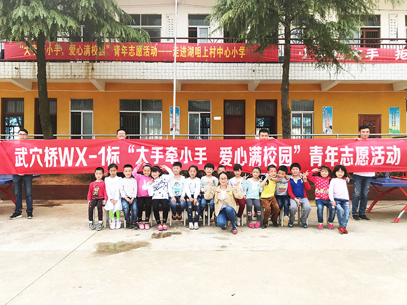 春光燦爛,花團錦簇,湖北路橋武穴橋一標項目的青年們卻無暇欣賞那漫山的芳華,他們帶著滿滿的愛心奔向那心中牽掛的祖國花朵們,用自己堅強的大手拉起孩子稚嫩的小手,一同溫暖前行。
