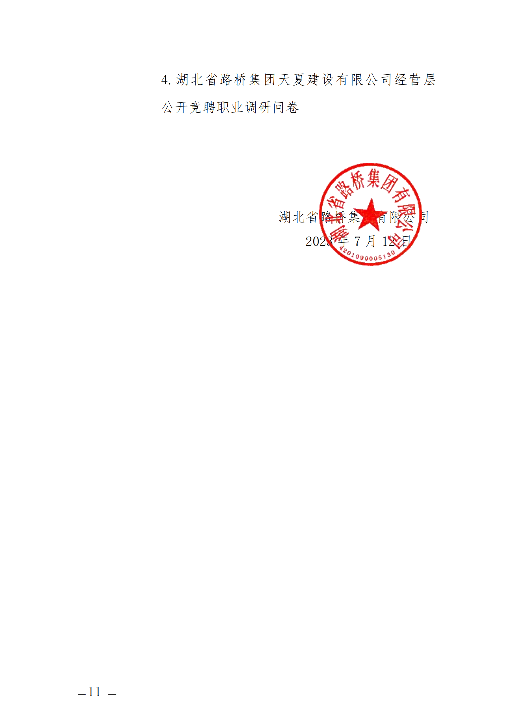 關(guān)于開展湖北省路橋集團(tuán)天夏建設(shè)有限公司經(jīng)營層團(tuán)隊(duì)公開競聘的通知
