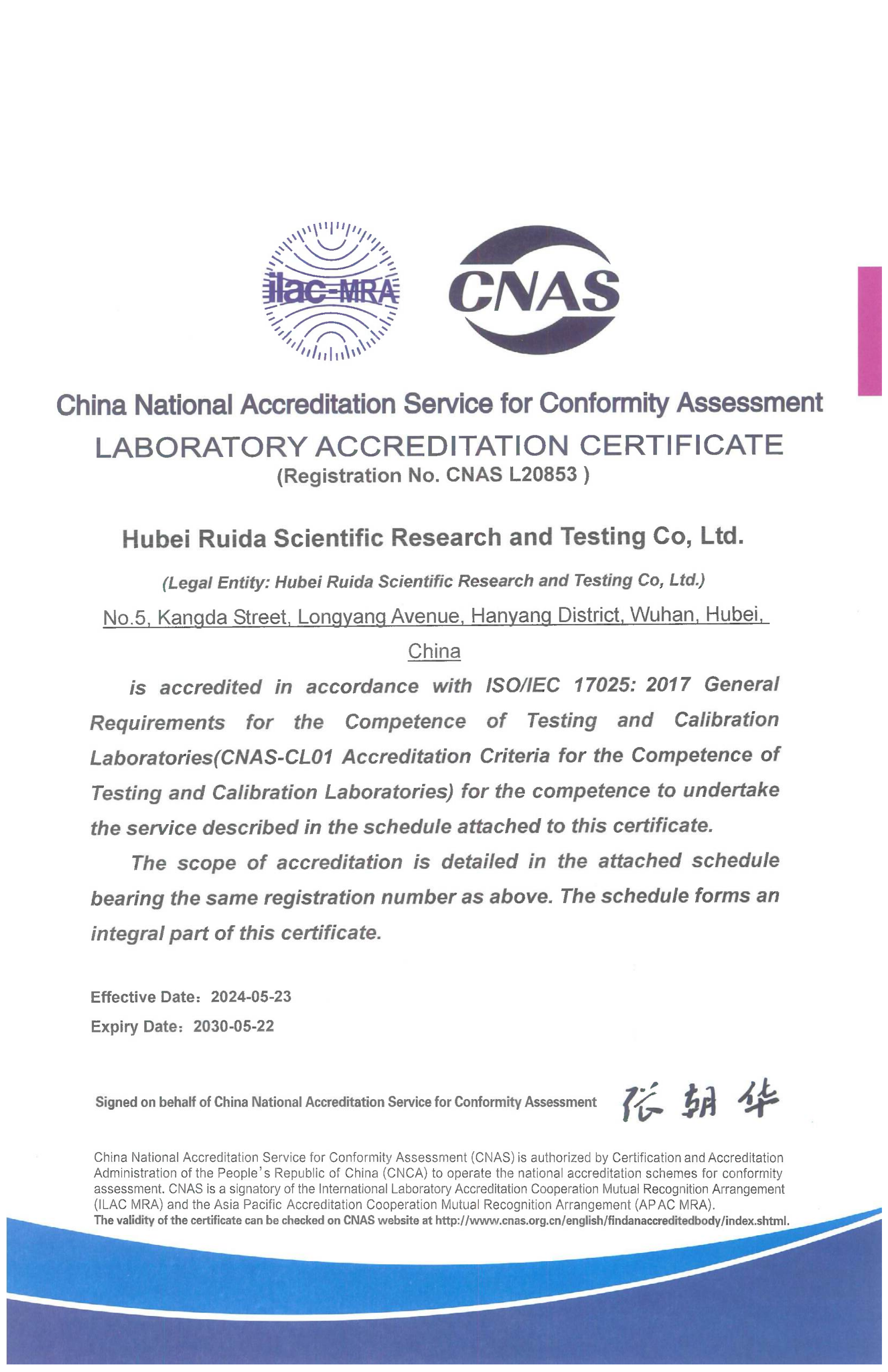 中國合格評定國家認可委員會,英文簡稱CNAS,是經(jīng)國家認證認可監(jiān)督管理委員會批準(zhǔn)設(shè)立并授權(quán)的目前國內(nèi)唯一有資格頒發(fā)國家認可實驗室證書的機構(gòu),也是國際實驗室認可合作組織(ILAC)和亞太實驗室認可合作組織(APLAC)的互認協(xié)議成員,其認可在國際和亞太地區(qū)具有極高權(quán)威性和公信力,可以獲得與CNAS簽署互認協(xié)議方國家和地區(qū)認可機構(gòu)的承認,擴大企業(yè)在國內(nèi)外市場的競爭力和影響力。獲得CNAS認可的實驗室和檢驗機構(gòu)出具的報告認可度更高、適應(yīng)性更廣、專業(yè)性更強。