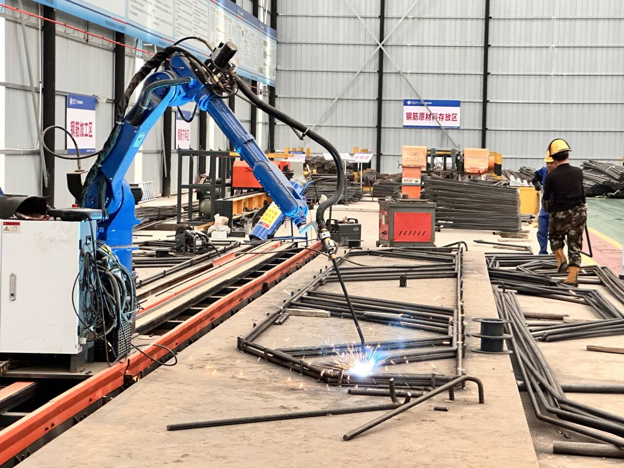 項目大力推行“智能制造”,鋼筋加工由自動彎箍機、滾焊機、焊接機器人等智能工裝精準完成,同時著力打造智慧拌合站數(shù)智梁場。混凝土拌和在全流程監(jiān)控下實現(xiàn)質量閉環(huán),每一片預制梁從澆筑到養(yǎng)護的生產數(shù)據流均被物聯(lián)網自動采集綁定,為每個構件賦予唯一的“數(shù)字基因”,使質量追溯貫穿全生命周期,實現(xiàn)從“工廠制造”向“數(shù)字智造”的深度轉型。