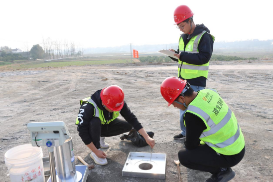 在試驗(yàn)段施工現(xiàn)場,研發(fā)團(tuán)隊(duì)依托灌砂法試驗(yàn)檢測壓實(shí)度、擊實(shí)試驗(yàn)確定最大干密度與最佳含水率、液塑限試驗(yàn)把控材料塑性指標(biāo)、燒灼試驗(yàn)檢測雜質(zhì)含量、CBR試驗(yàn)驗(yàn)證承載能力,每一項(xiàng)試驗(yàn)都全程留痕、數(shù)據(jù)詳實(shí)。研發(fā)團(tuán)隊(duì)在填筑層內(nèi)埋設(shè)智能離子遷移傳感器、土壤墑情儀等設(shè)備,結(jié)合地下水環(huán)境監(jiān)測井長期跟蹤,確保改性磷石膏浸出液pH值穩(wěn)定在6~9之間,特征污染物濃度符合國家排放標(biāo)準(zhǔn),路用性能與環(huán)保指標(biāo)雙達(dá)標(biāo)。