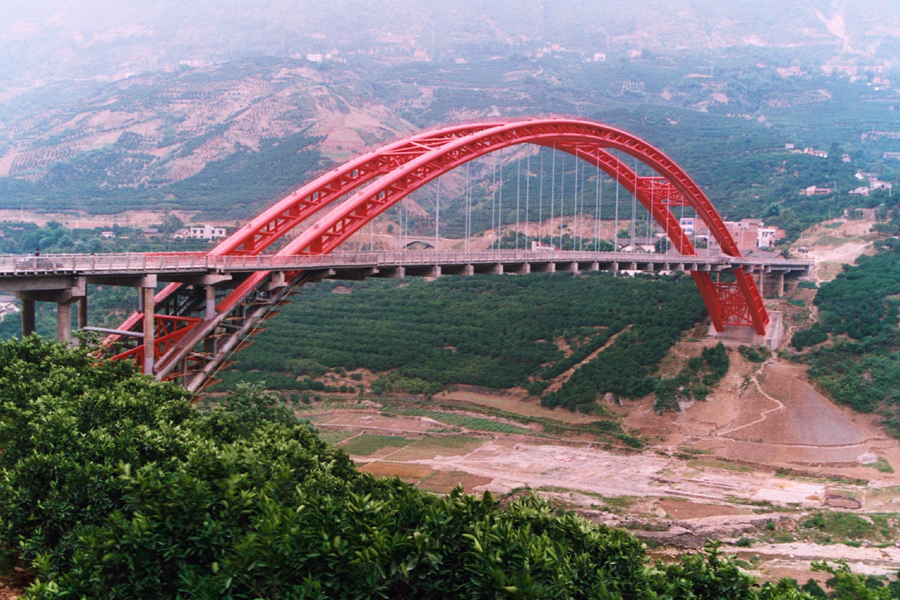 秭歸龍?zhí)逗哟髽蛭挥谥闹袊?guó)臍橙之鄉(xiāng)----湖北秭歸縣腹地,主跨為208米的特大跨徑中承式鋼管混凝土拱橋,該橋在國(guó)內(nèi)首次采用“大跨徑鋼管砼拱橋纜索吊裝塔架扣架一體化施工,獲湖北省科技進(jìn)步二等獎(jiǎng),于2000年建成。