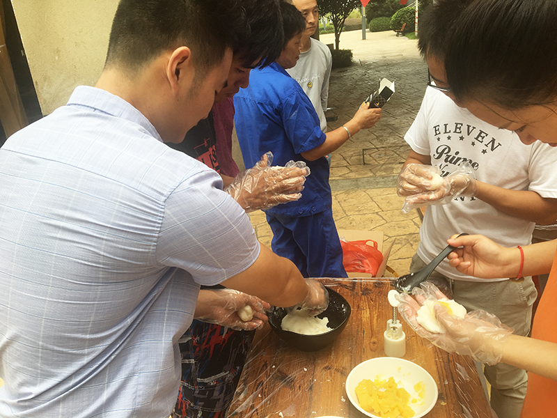 品嘗月餅也是中秋節(jié)的習(xí)俗之一,如果能品嘗自己親手制作的月餅,這個(gè)中秋節(jié)肯定更加難忘。活動(dòng)第二項(xiàng)就是制作冰皮月餅,大家一邊自己動(dòng)手和冰皮、包餡、壓花定型,一邊相互交流著關(guān)于中秋和月餅的故事。看似簡(jiǎn)單的制作過(guò)程,要做出漂亮的月餅也讓大家費(fèi)了不少心思。有些止不住饞的小伙伴,還沒(méi)等做完就迫不及待的嘗鮮了,也有些舍不得吃的,說(shuō)要帶回家與家人分享。
