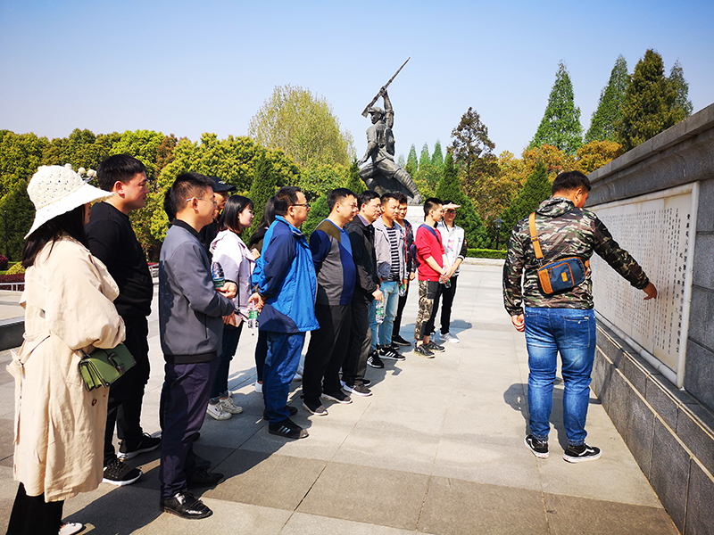 7日上午,項目部一行二十余人懷著無比崇敬的心情來到教育活動的第一站——黃麻起義和鄂豫皖蘇區(qū)革命烈士陵園。邁過大門,穿過一片林蔭大道,來到巍然聳立的烈士紀(jì)念碑前,大家瞻仰先烈,認真閱讀碑文,感受革命先驅(qū)為家、為國的大無畏犧牲精神。“小小黃安,人人好漢。銅鑼一響,四十八萬。男將打仗,女將送飯”,紀(jì)念碑背面這首簡單的童謠更是敲擊著我們的內(nèi)心:是無數(shù)的烈士用他們的生命和鮮血換來我們今天的幸福生活,我們還有什么理由不珍惜?!