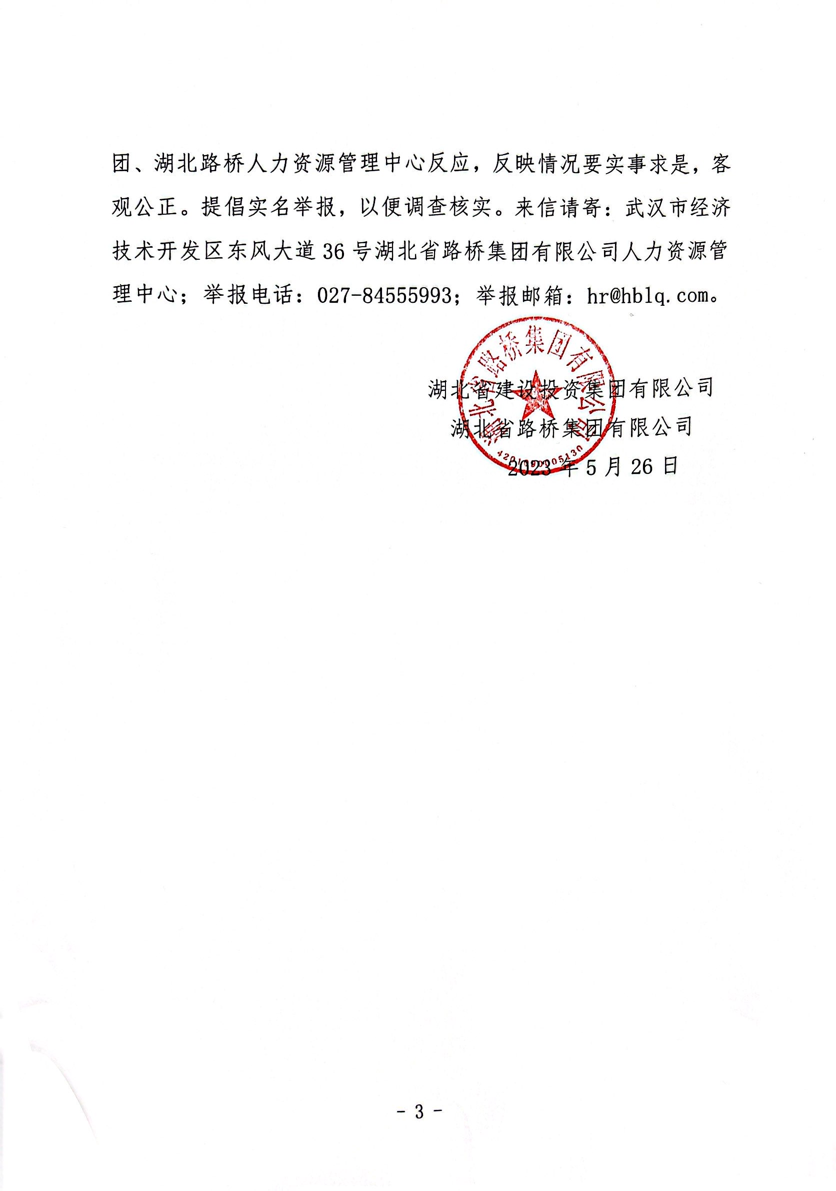 湖北省路橋集團(tuán)有限公司擬提拔任用管理人員任前公示