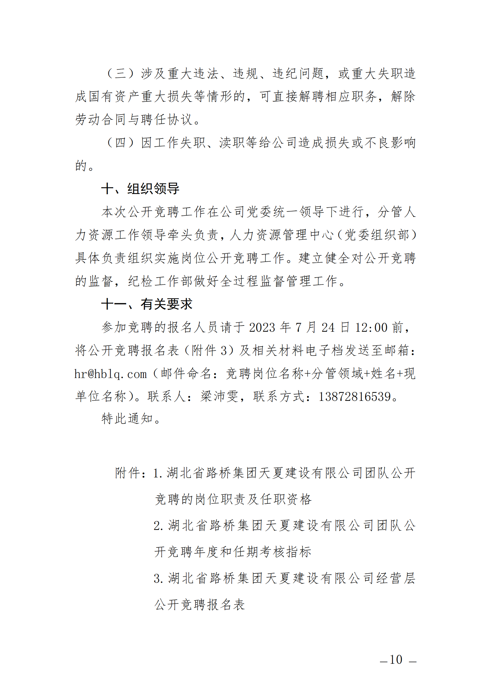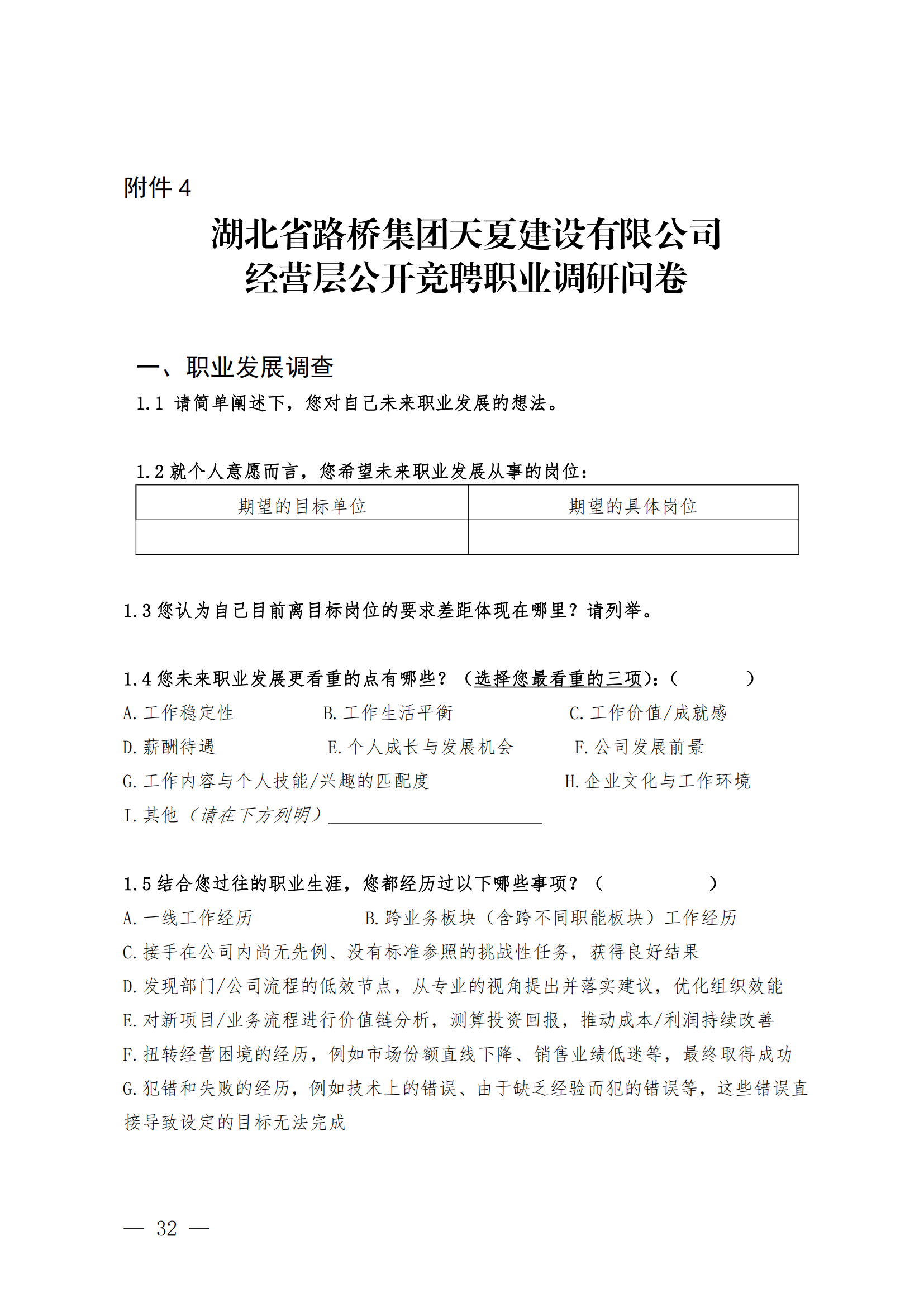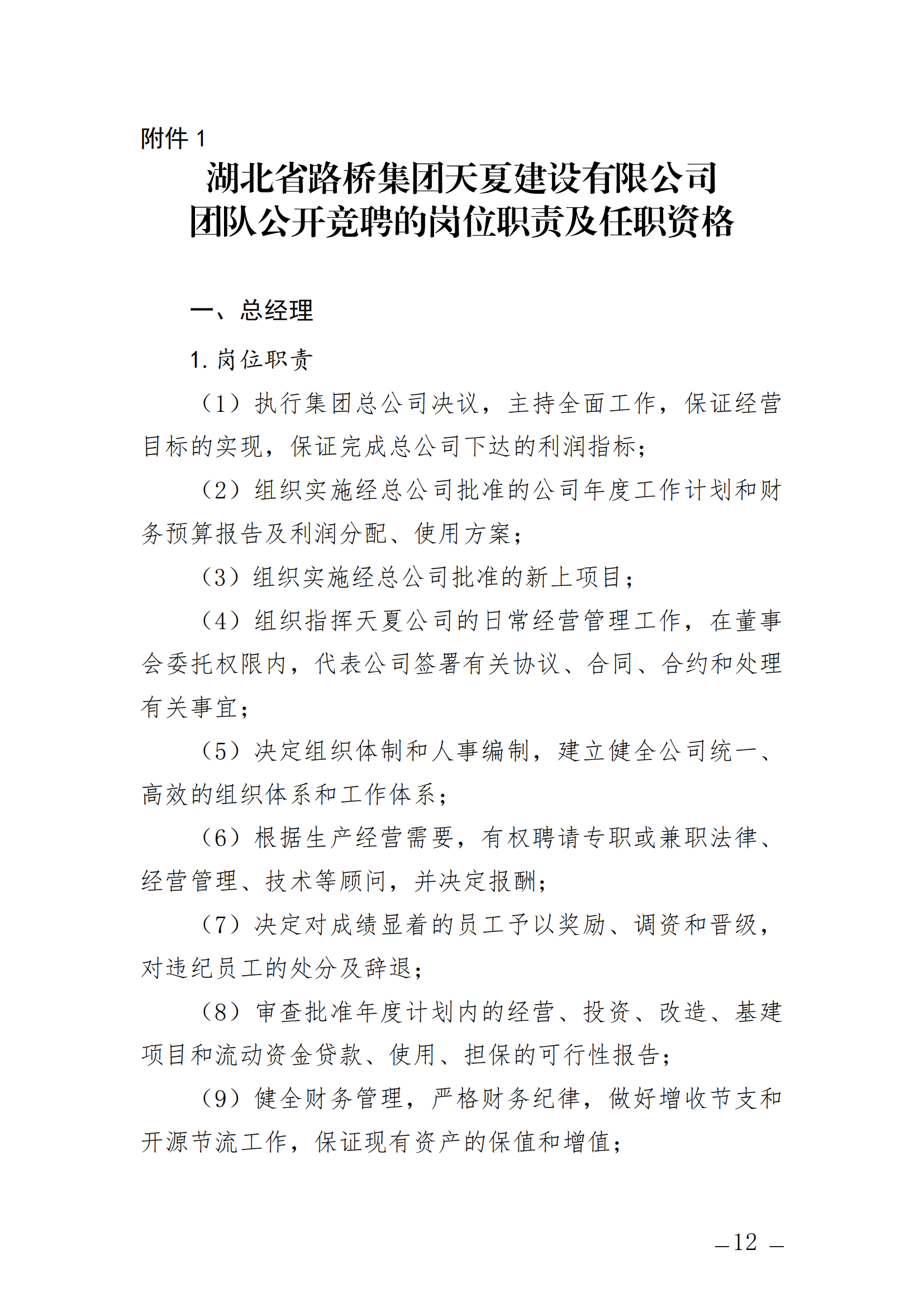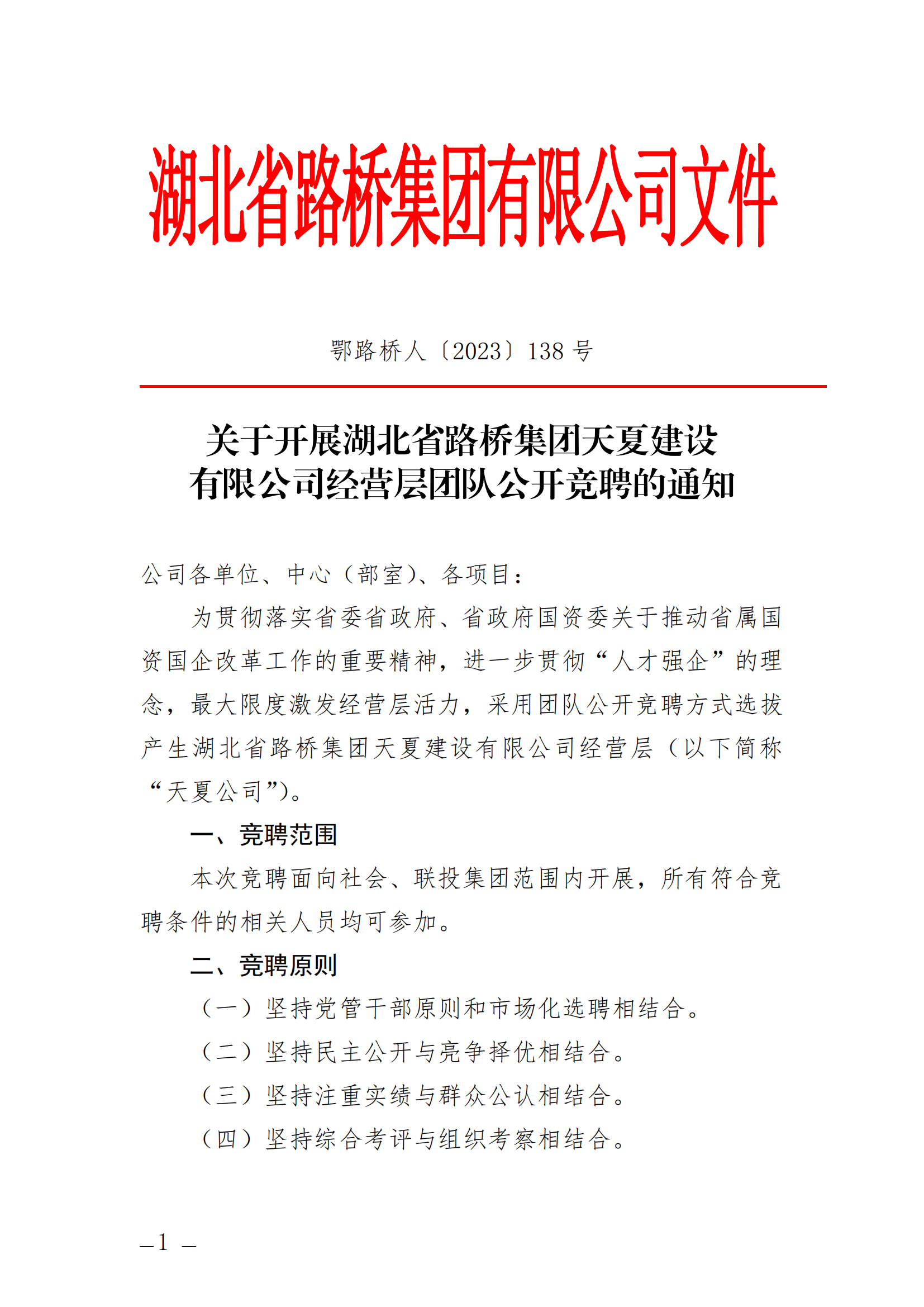 關(guān)于開展湖北省路橋集團(tuán)天夏建設(shè)有限公司經(jīng)營層團(tuán)隊(duì)公開競聘的通知
