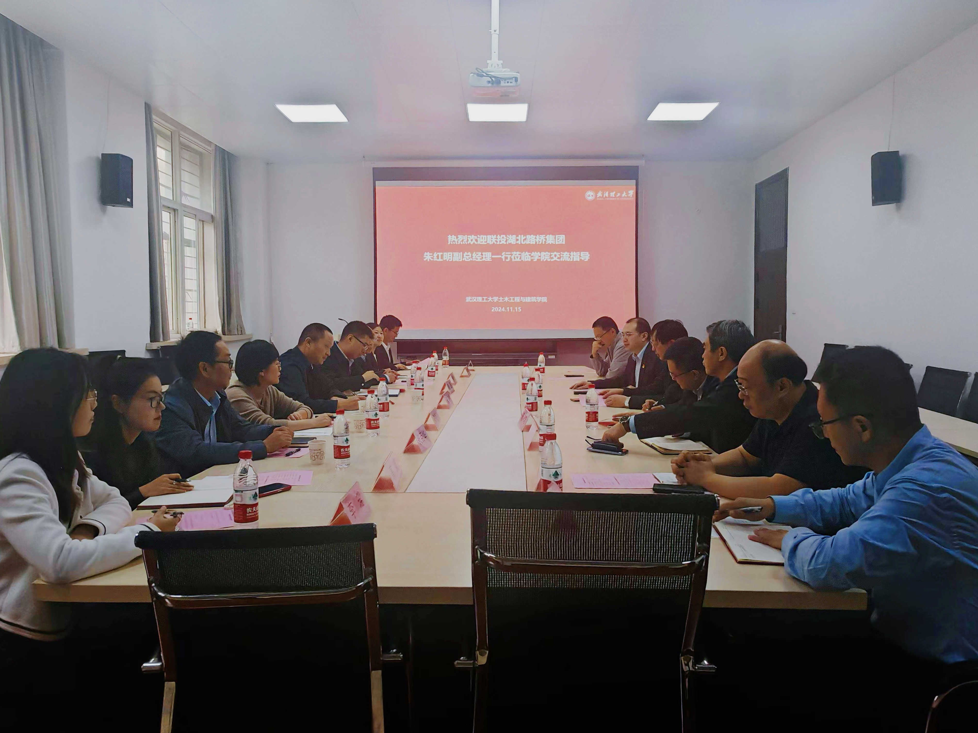 吳斌對湖北路橋一行的到來表示熱烈歡迎,并簡要介紹了土建學(xué)院發(fā)展歷史、學(xué)科建設(shè)、人才培養(yǎng)、科技創(chuàng)新等最新情況。他表示,近年來,學(xué)院在持續(xù)拓展科技成果轉(zhuǎn)化的新渠道、新途徑,湖北路橋作為省內(nèi)工程建設(shè)領(lǐng)域重點企業(yè),始終秉持開放合作的理念,積極與各高校建立“產(chǎn)學(xué)研”實踐基地。2018年,湖北路橋與武漢理工大學(xué)成功建立了“聯(lián)合人才培養(yǎng)實踐基地”,這一成果為雙方深化合作打下了堅實的基礎(chǔ),當(dāng)前雙方共建“博士后創(chuàng)新實踐基地”和“卓越工程師”校企聯(lián)合培養(yǎng)項目,不僅是順勢而為,更是對既有合作模式的深化與升級,雙方要攜手促進學(xué)術(shù)研究與產(chǎn)業(yè)實踐的深度融合與協(xié)同發(fā)展,不斷推動行業(yè)技術(shù)進步和產(chǎn)業(yè)升級,實現(xiàn)互利共贏的新局面。