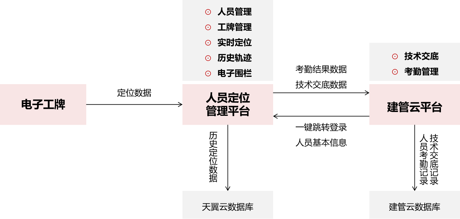 平臺(tái)接入聯(lián)投集團(tuán)建管云,通過“北斗定位+雙平臺(tái)協(xié)同(人員定位管理平臺(tái)+建管云平臺(tái))”的模式落地,構(gòu)建“終端采集-平臺(tái)處理-多端協(xié)同”全流程體系,實(shí)現(xiàn)考勤自動(dòng)化、定位精準(zhǔn)化、交底數(shù)字化、管理可視化。