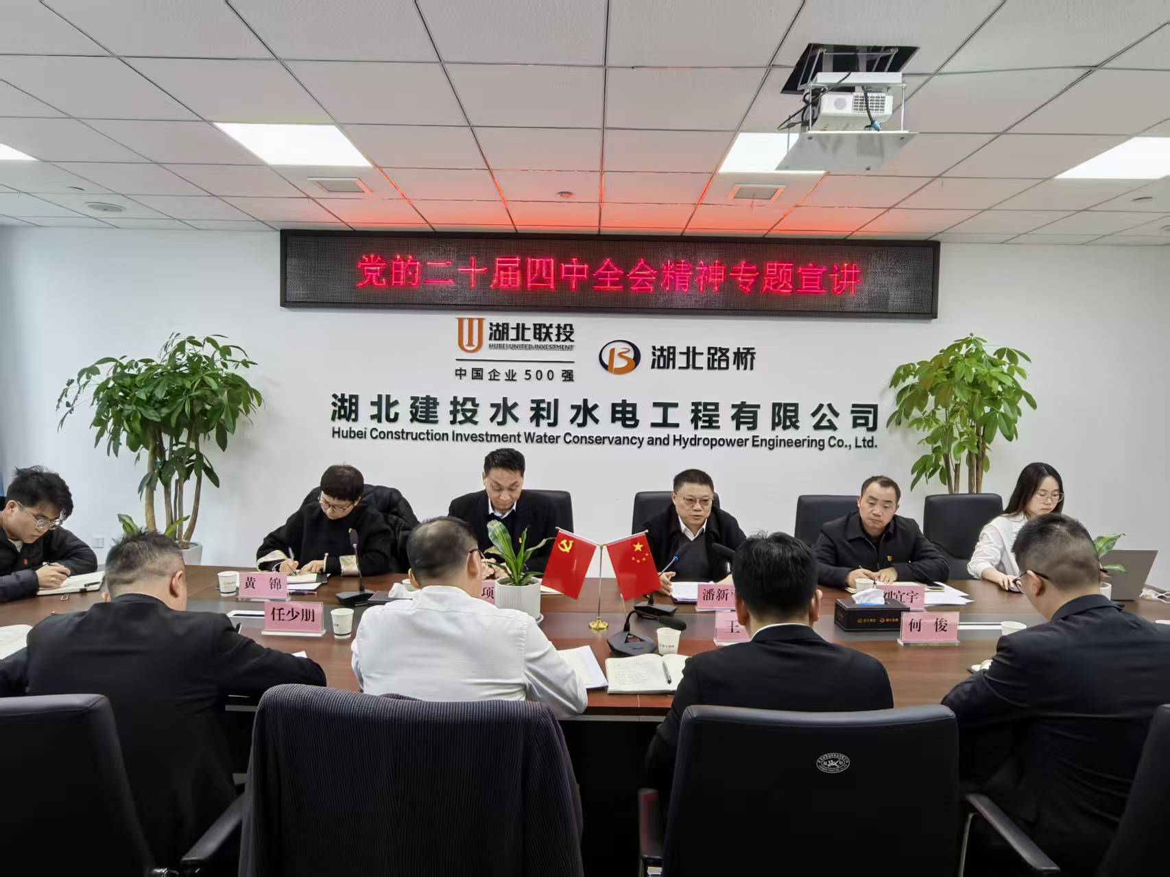 12月30日,湖北路橋黨委書記、董事長潘新平赴水利公司講授學習貫徹黨的二十屆四中全會精神專題黨課并開展工作調研,黨建工作部(黨委辦公室、董事會辦公室)、財務管理部(資金中心)、科學技術質量部(數字信息中心)負責人一同參加。
