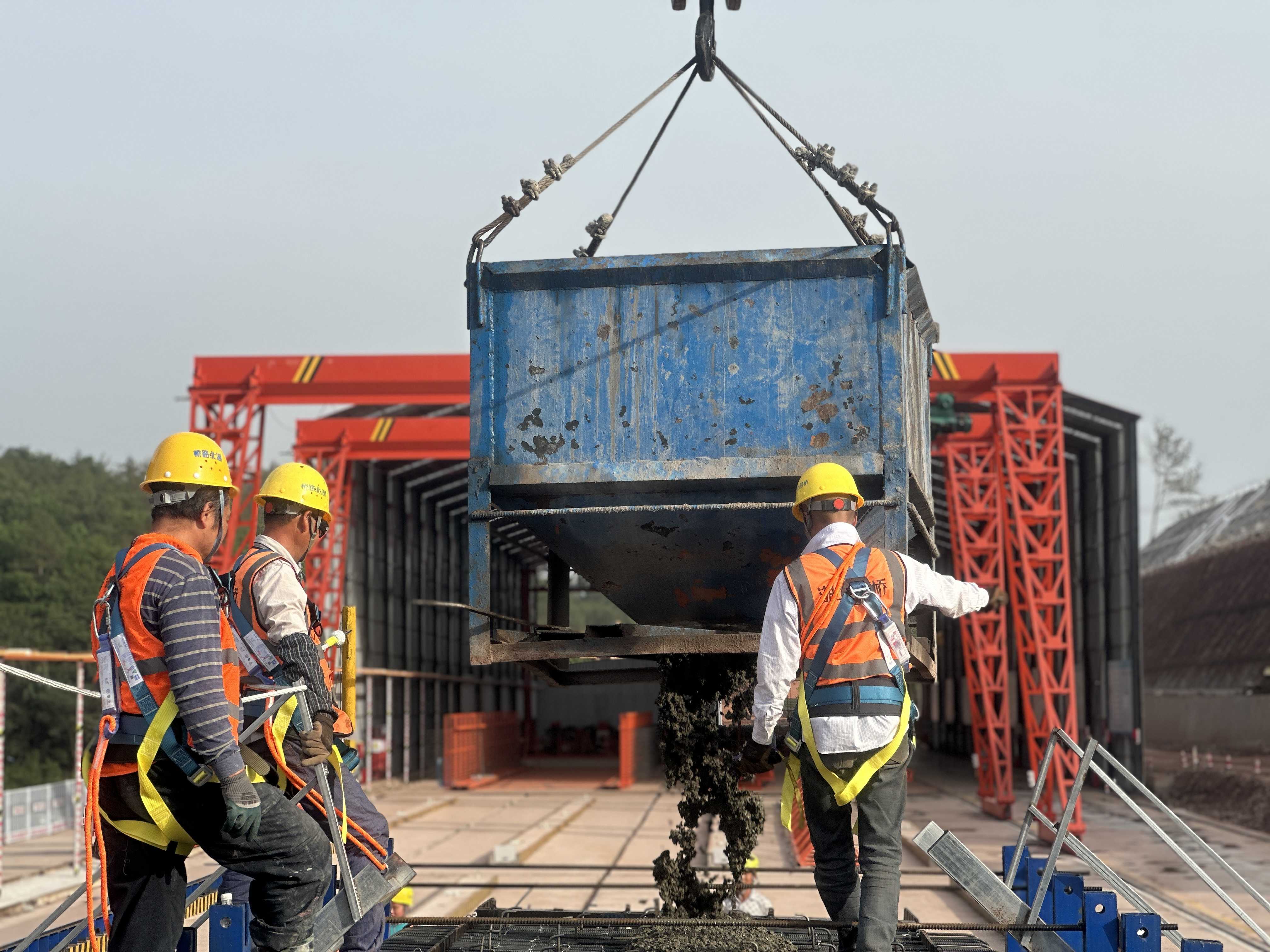 走進項目預(yù)制梁場,工友們正有序準(zhǔn)備梁片預(yù)制材料。根據(jù)施工計劃,標(biāo)段全線共需預(yù)制1683片T梁。4月底,項目已完成駐馬溪大橋右幅首片T梁澆筑,拉開了項目橋梁上部結(jié)構(gòu)施工的序幕。
