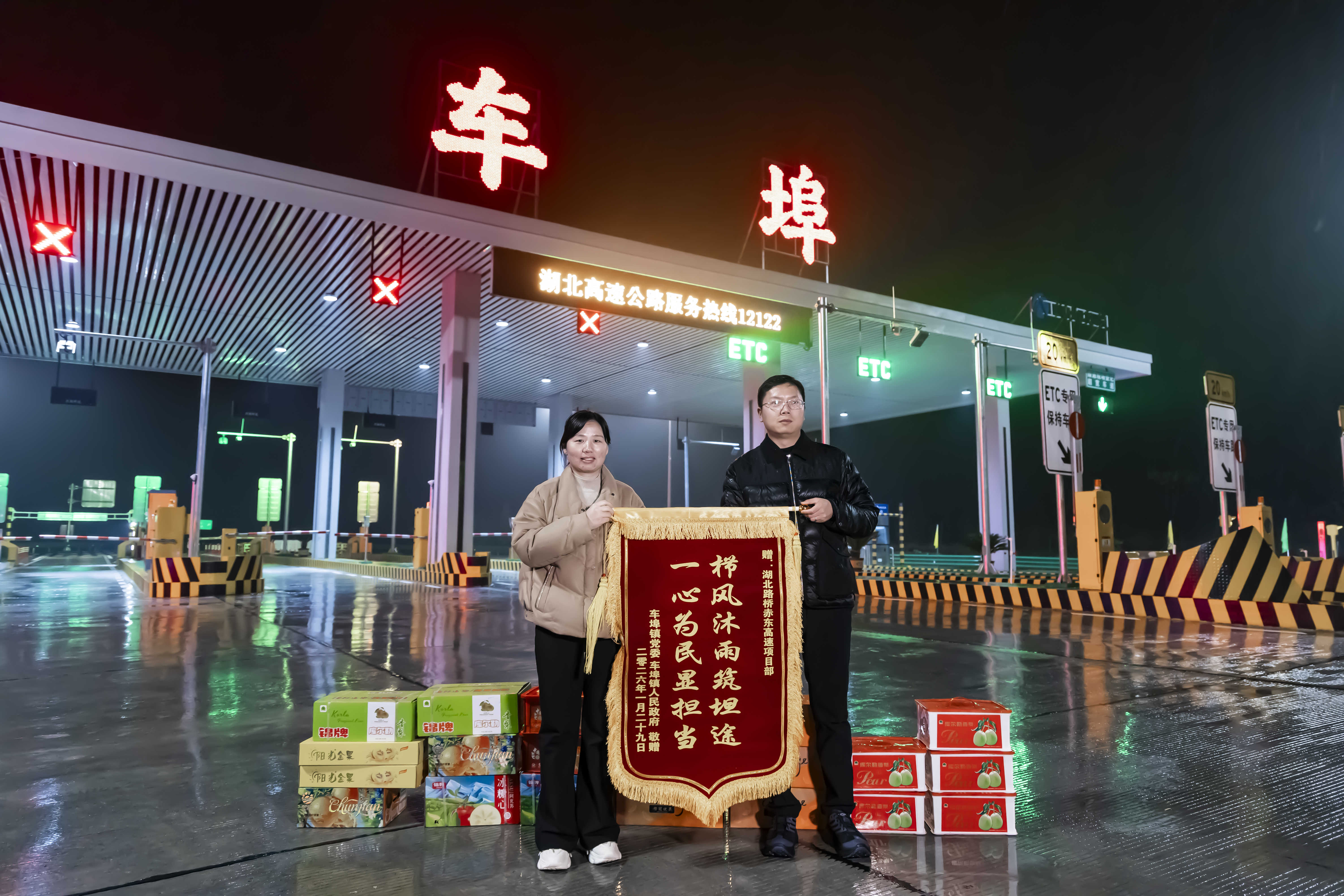 當(dāng)日的通車儀式上,赤壁市赤東高速協(xié)調(diào)專班及車埠鎮(zhèn)人民政府向聯(lián)投湖北路橋項(xiàng)目團(tuán)隊(duì)贈送錦旗。這份認(rèn)可既是肯定也是鞭策,更是對項(xiàng)目團(tuán)隊(duì)攻堅(jiān)克難、兌現(xiàn)承諾的褒獎。從攻克溶洞難題到整改遺留問題,從搶工期保質(zhì)量到護(hù)生態(tài)惠民生,每一步都凝聚著團(tuán)隊(duì)心血,錦旗承載的不僅是信任,更是沉甸甸的責(zé)任。
